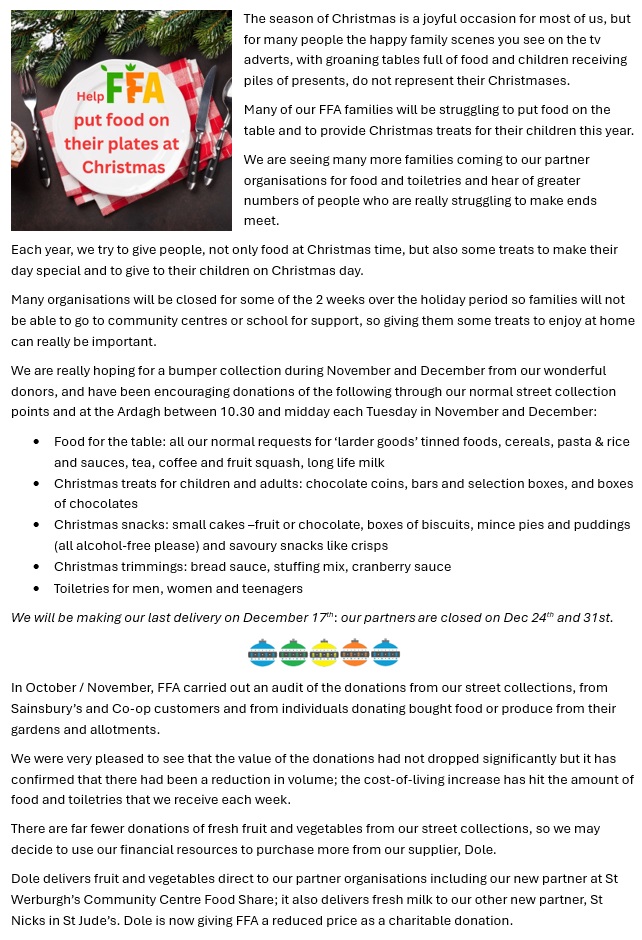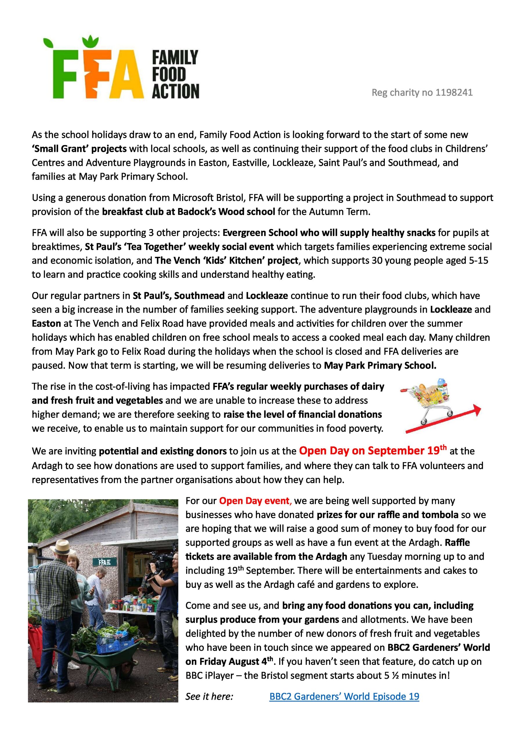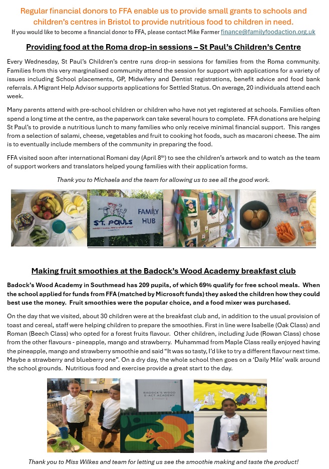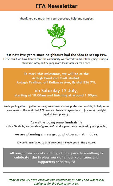 or to sign up for a regular donation to FFA please email finance@familyfoodaction.org.uk