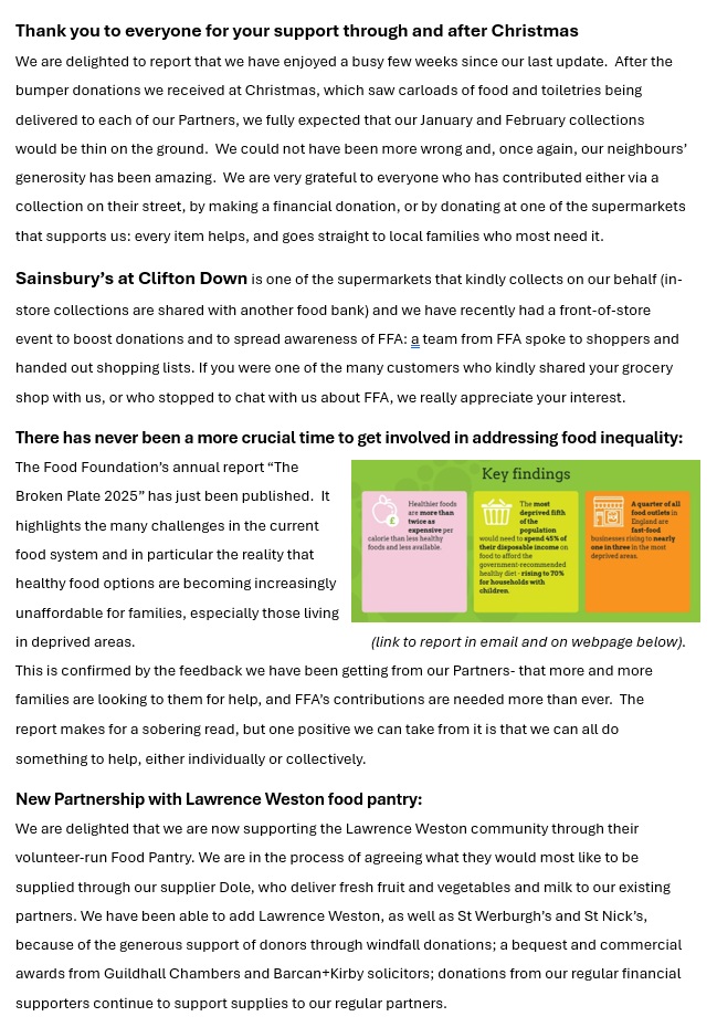 Please make sure you add our email address, contact@familyfoodaction.org.uk , to your address book or it will end up in your spam folder.
